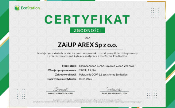 W AREX konsekwentnie rozwijamy integrację naszych urządzeń z wiodącymi systemami zarządzania infrastrukturą EV. Stacje ładowania pojazdów elektrycznych wymagają niezawodnej obsługi użytkowników i zaawansowanego raportowania. W styczniu uzyskaliśmy Certyfikat zgodności dla stacji ładowania EV serii ACX z platformą EcoStation, potwierdzający pełną integrację w standardzie OCPP 1.6. To ważny krok w budowie […]