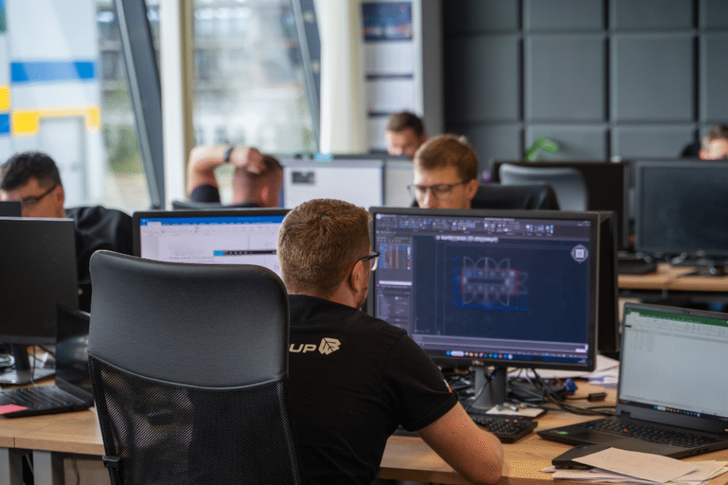 Realizujemy projekty całościowo: od koncepcji, przez projektowanie sprzętu i oprogramowania, aż po wdrożenia prototypowe i produkcję seryjną. Na każdym etapie zapewniamy profesjonalne doradztwo techniczne.